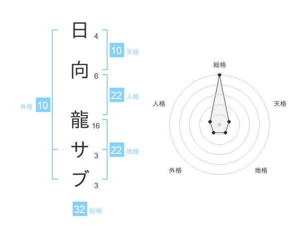 日向 龍サブさんを姓名の画数から五運を鑑定
