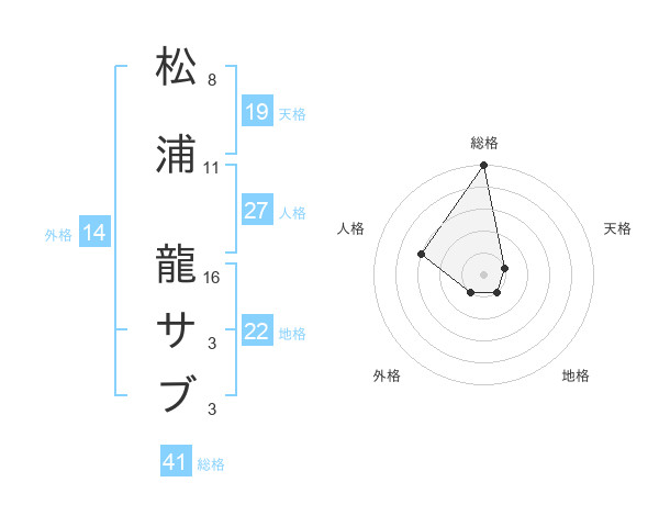 松浦 龍サブさんの総格は41画の5点!