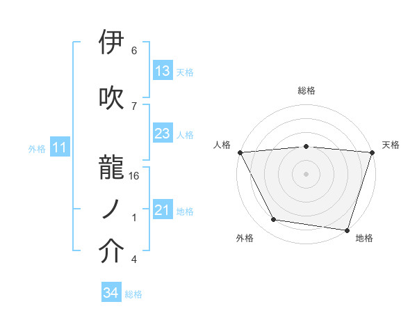 伊吹 龍ノ介さんの天格は13画の5点!