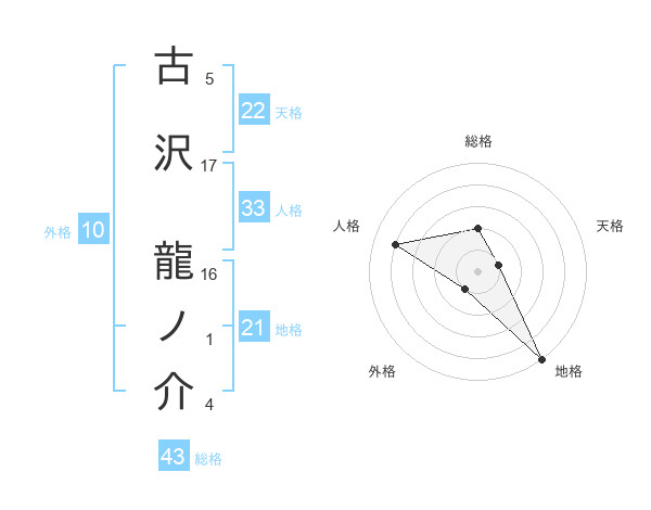 古沢 龍ノ介さんの天格は22画の1点!