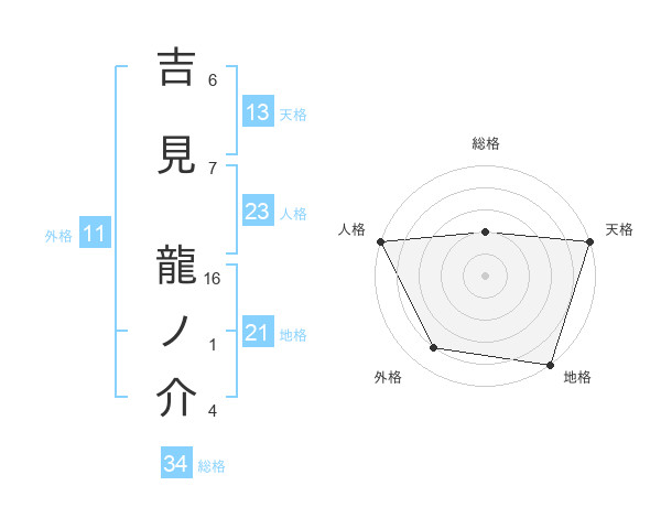 吉見 龍ノ介さんを姓名の画数から五運を鑑定