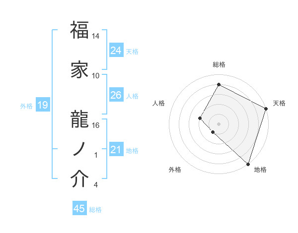 福家 龍ノ介さんを姓名の画数から五運を鑑定