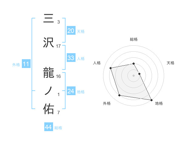 三沢 龍ノ佑さんを姓名の画数から五運を鑑定