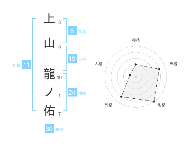 上山 龍ノ佑さんを姓名の画数から五運を鑑定