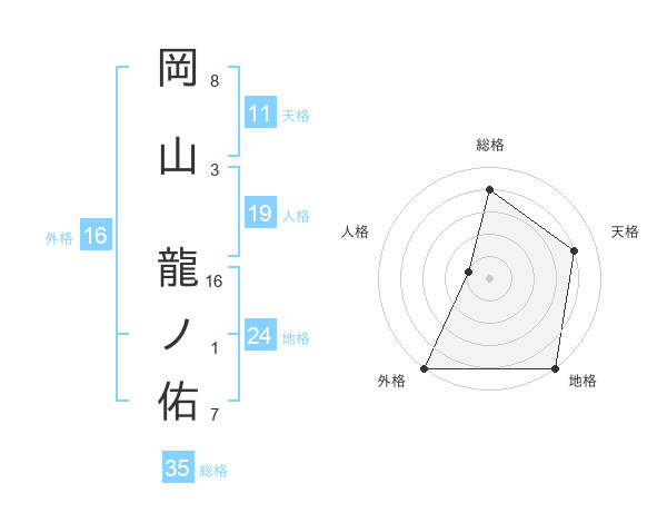 岡山 龍ノ佑さんを姓名の画数から五運を鑑定