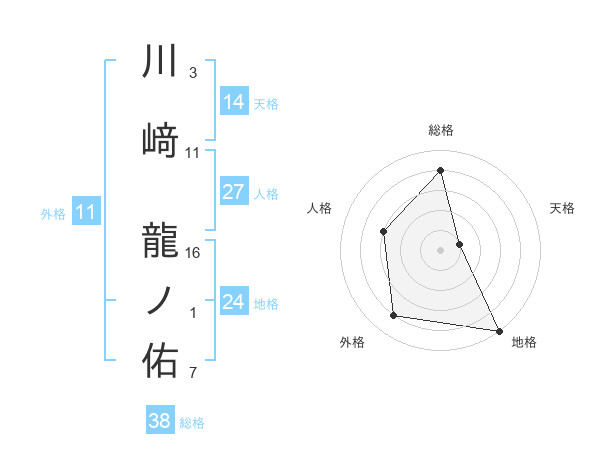 川﨑 龍ノ佑さんの総格は38画の4点!