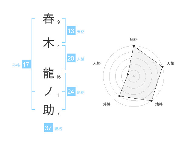 春木 龍ノ助さんの総格は37画の5点