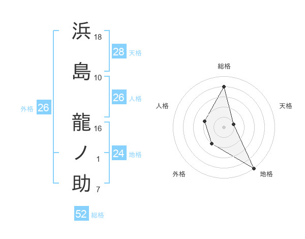 浜島 龍ノ助さんを姓名の画数から五運を鑑定