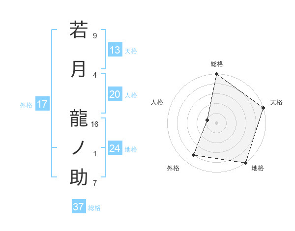 若月 龍ノ助さんの天格は13画の5点!