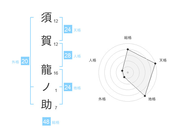 須賀 龍ノ助さんの天格は24画の5点!