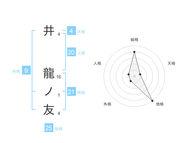 井 龍ノ友さんを姓名の画数から五運を鑑定