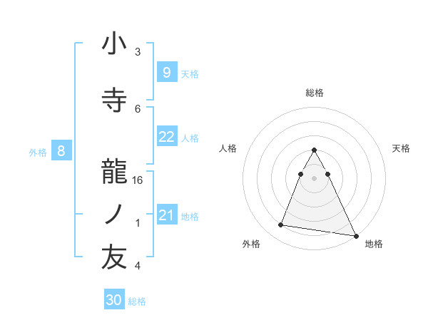 小寺 龍ノ友さんの総格は30画の2点!