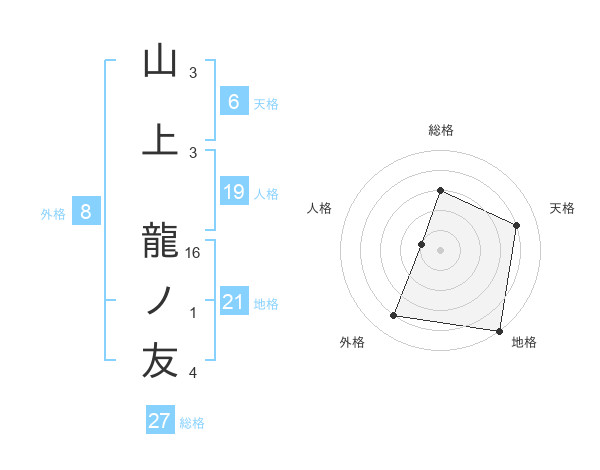 山上 龍ノ友さんを姓名の画数から五運を鑑定