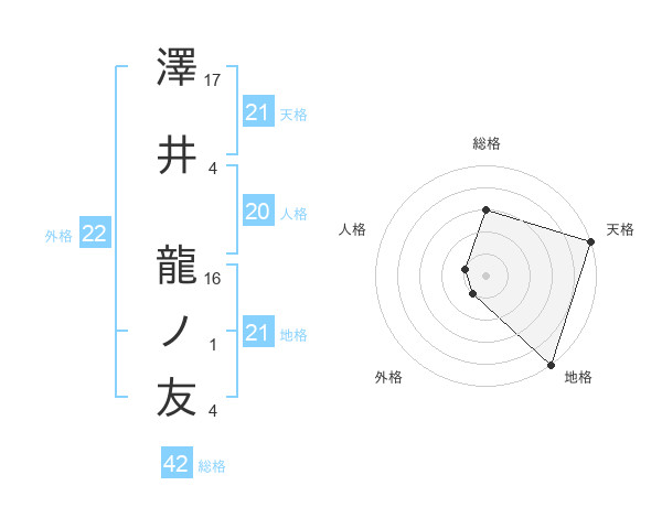 澤井 龍ノ友さんを姓名の画数から五運を鑑定