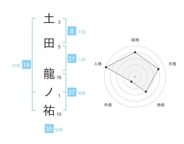 土田 龍ノ祐さんの総格は35画の4点!