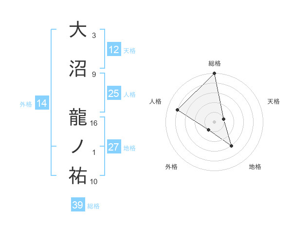 大沼 龍ノ祐さんを姓名の画数から五運を鑑定