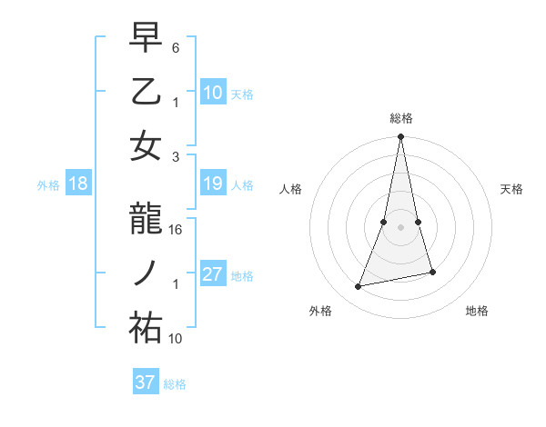 早乙女 龍ノ祐さんの総格は37画の5点!