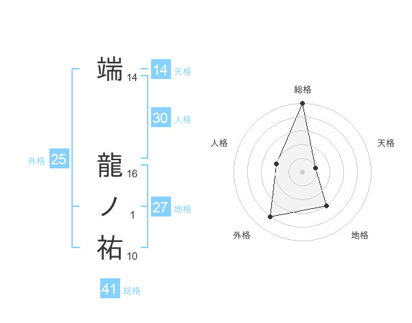 端 龍ノ祐さんを姓名の画数から五運を鑑定