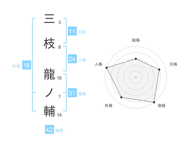 三枝 龍ノ輔さんを姓名の画数から五運を鑑定
