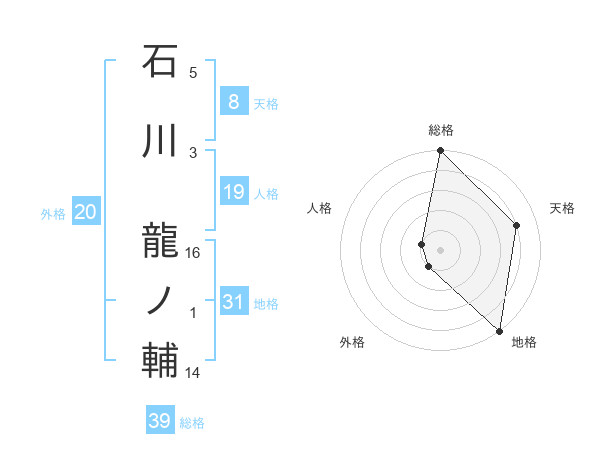 石川 龍ノ輔さんを姓名の画数から五運を鑑定