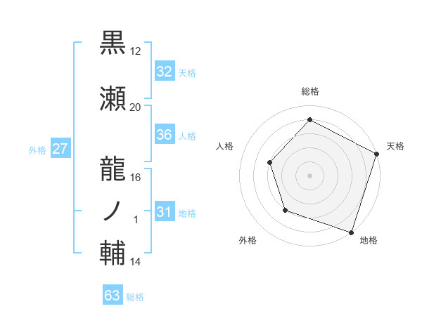 黒瀬 龍ノ輔さんの総格は63画の4点!