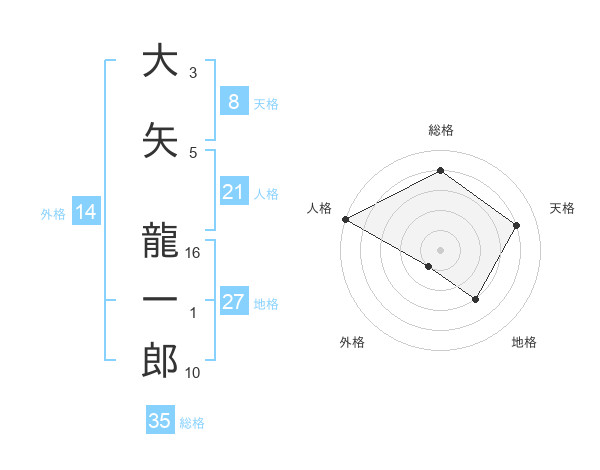 大矢 龍一郎さんを姓名の画数から五運を鑑定
