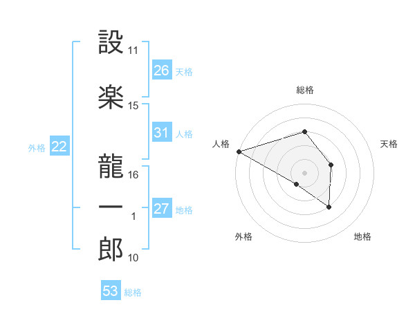 設楽 龍一郎さんを姓名の画数から五運を鑑定