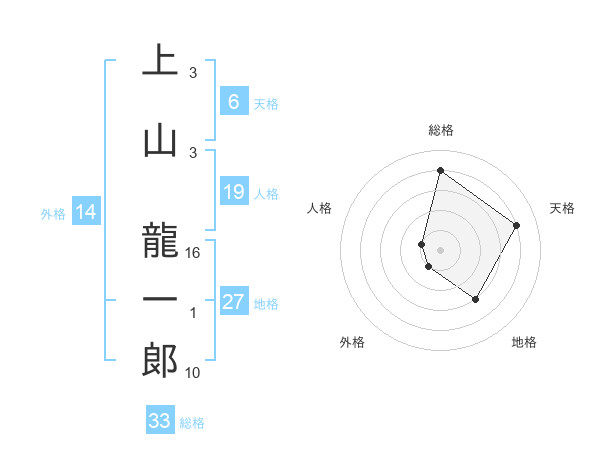 上山 龍一郞さんを姓名の画数から五運を鑑定