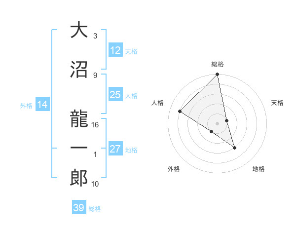 大沼 龍一郞さんを姓名の画数から五運を鑑定