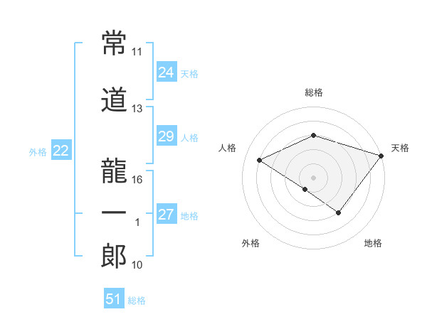常道 龍一郞さんの総格は51画の3点!