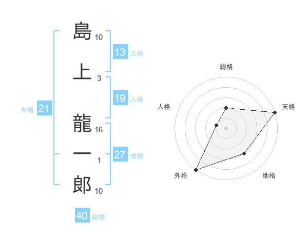 島上 龍一郞さんを姓名の画数から五運を鑑定