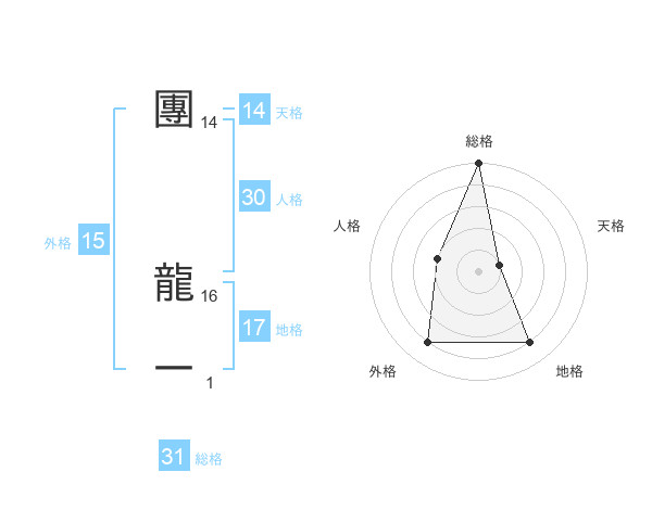 團 龍一さんの総格は31画の5点!