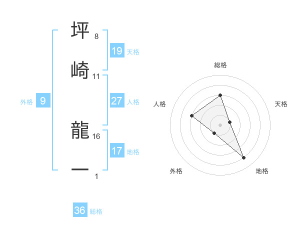 坪崎 龍一さんの総格は36画の3点!