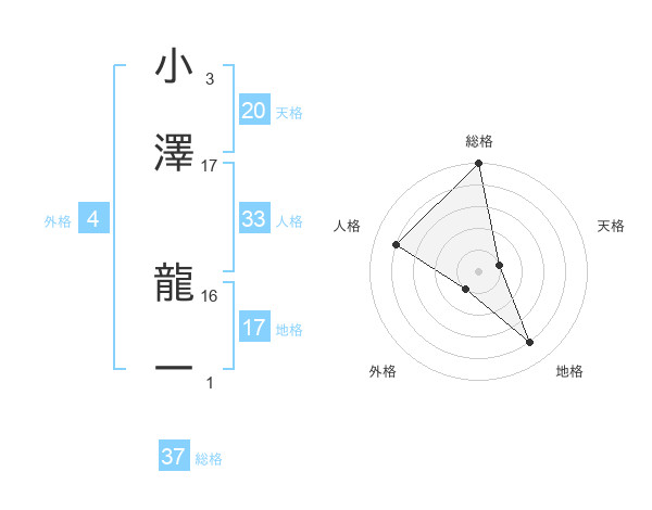 小澤 龍一さんの総格は37画の5点!