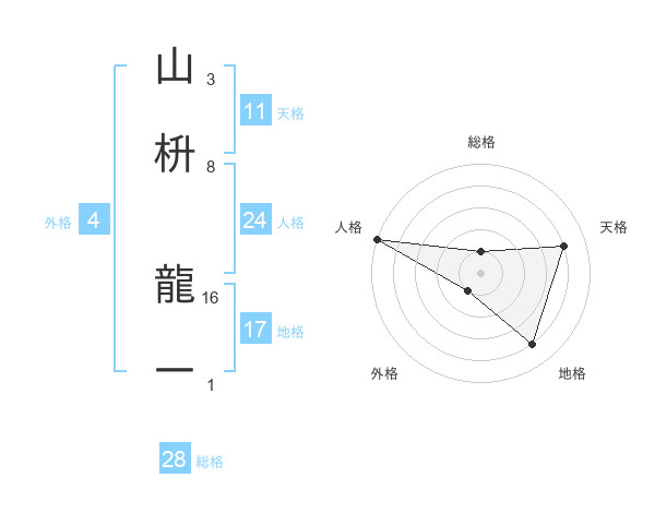 山枡 龍一さんを姓名の画数から五運を鑑定