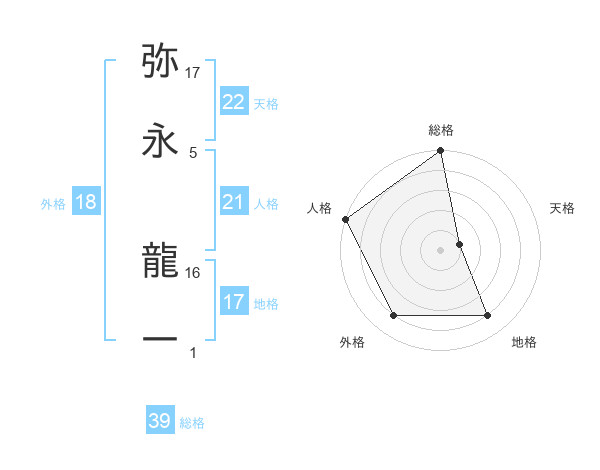 弥永 龍一さんの総格は39画の5点!