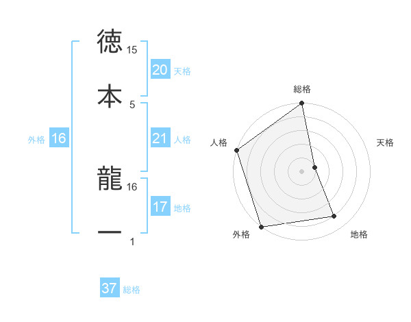 徳本 龍一さんを姓名の画数から五運を鑑定