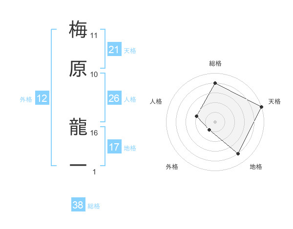 梅原 龍一さんを姓名の画数から五運を鑑定