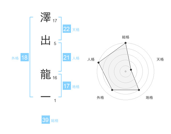澤出 龍一さんを姓名の画数から五運を鑑定