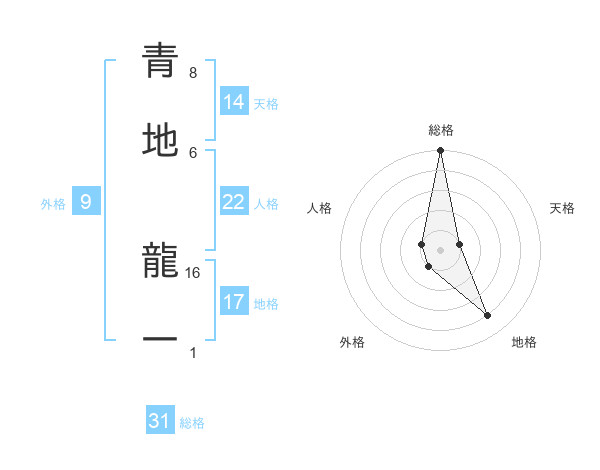 青地 龍一さんの総格は31画の5点!
