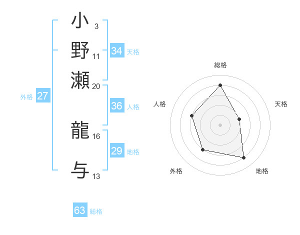 小野瀬 龍与さんを姓名の画数から五運を鑑定