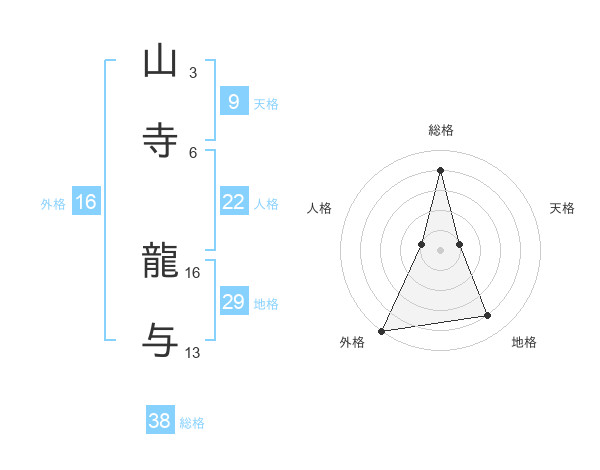 山寺 龍与さんの総格は38画の4点!