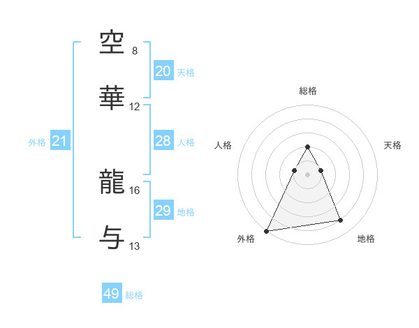 空華 龍与さんの外格は21画の5点!