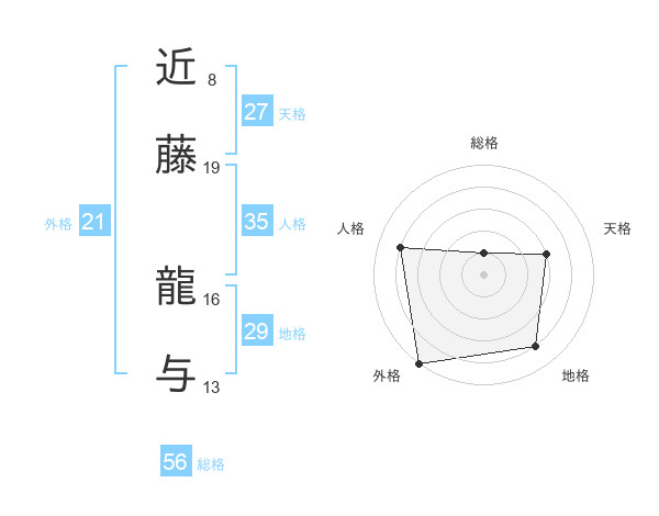 近藤 龍与さんの総格は56画の1点