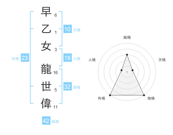 早乙女 龍世偉さんを姓名の画数から五運を鑑定