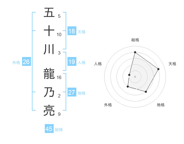五十川 龍乃亮さんを姓名の画数から五運を鑑定