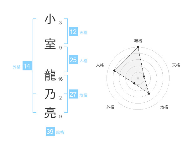小室 龍乃亮さんを姓名の画数から五運を鑑定