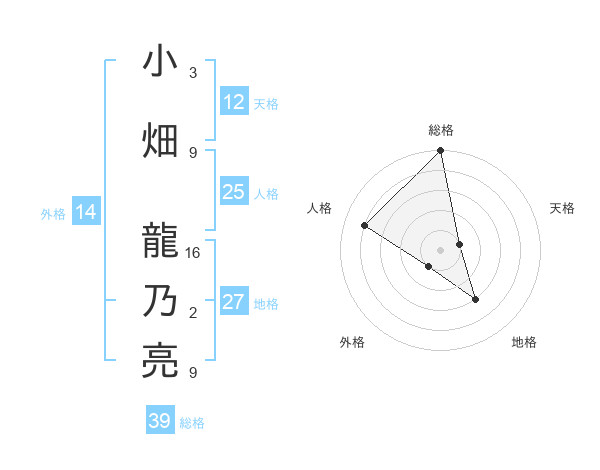 小畑 龍乃亮さんを姓名の画数から五運を鑑定