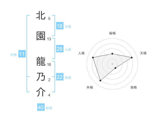 北園 龍乃介さんを姓名の画数から五運を鑑定