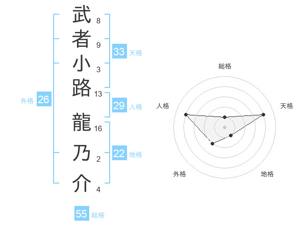 武者小路 龍乃介さんの総格は55画の1点!